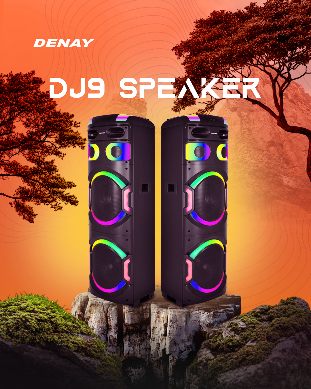 اسپیکر دیجی3 را خاطرتان هست؟ این اسپیکر با اندکی تغییر و اضافه شدن دو میدرنج، با قدرت صدای 160 وات RMS واقعی، رنگ و رخی جدید و به‌روزتر به خود گرفته است و حالا آن را DE-DA2012DJ7 صدا می‌زنیم! پنل دیجی که مهم‌ترین ویژگی این مدل از خانواده‌ی اسپیکرهای دنای است، امکان تغییر و شخصی سازی صدا و موسیقی را به شکل دلخواه شما فراهم می‌کند. برای نمونه، دکمه‌های دیجی مود (DJ mode) و تغییر صدای میکروفون، در کنار دیگر دکمه‌ها، این وظیفه را برعهده دارند.
